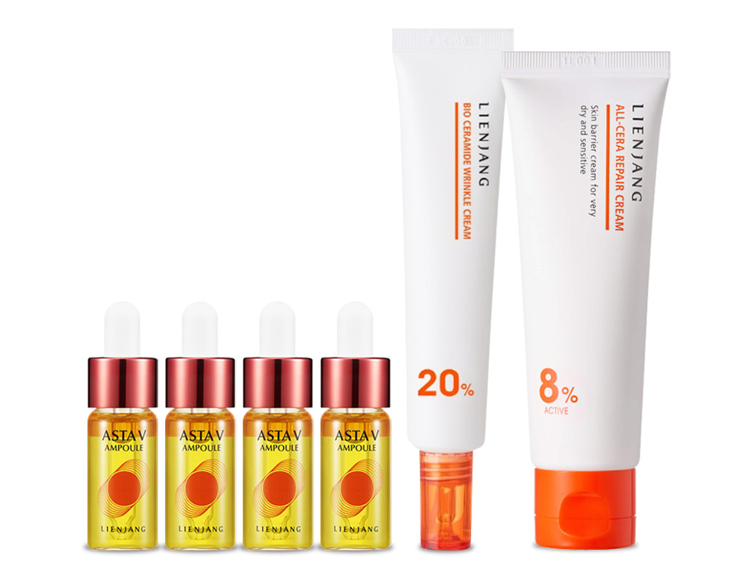 COMBO LIENJANG ALL-CERA REPAIR CREAM & BIO CERAMIDE WRINKLE CREAM & ASTA V AMPOULE PROGRAM - Bộ Kem Dưỡng & Serum - Mờ Nám Giảm Nếp Nhăn Phục Hồi Da - Ceramide, Vitamin C , Astaxanthin - [LJ011]
