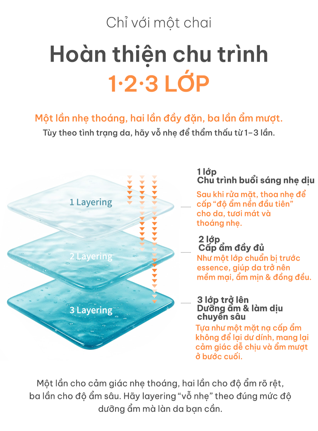 Đặc biệt phù hợp cho da nhạy cảm, da khô, da dễ mất cân bằng theo mùa , và những ai muốn layering nhiều lớp dưỡng ẩm mà không bết dính .