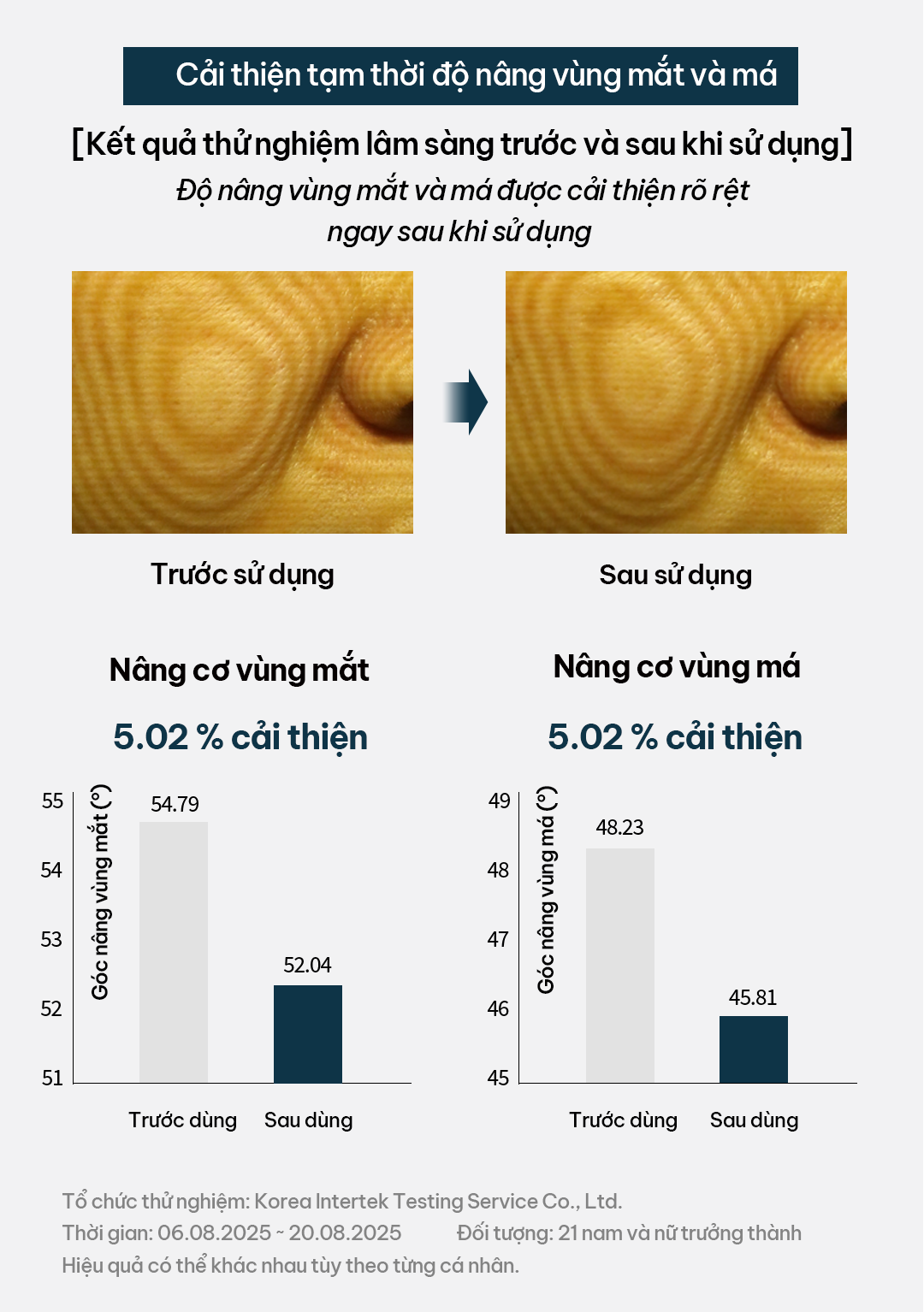 Mặt nạ ứng dụng công nghệ HYM Technology™ độc quyền kết hợp giữa sheet + gel sinh học phân hủy tự nhiên , cho khả năng ôm khít da, truyền dưỡng chất sâu và không bị khô dù đắp lâu . Đây là dòng mặt nạ chuyên sâu dành cho vùng má và mắt , nơi dễ chảy xệ, thiếu đàn hồi.
