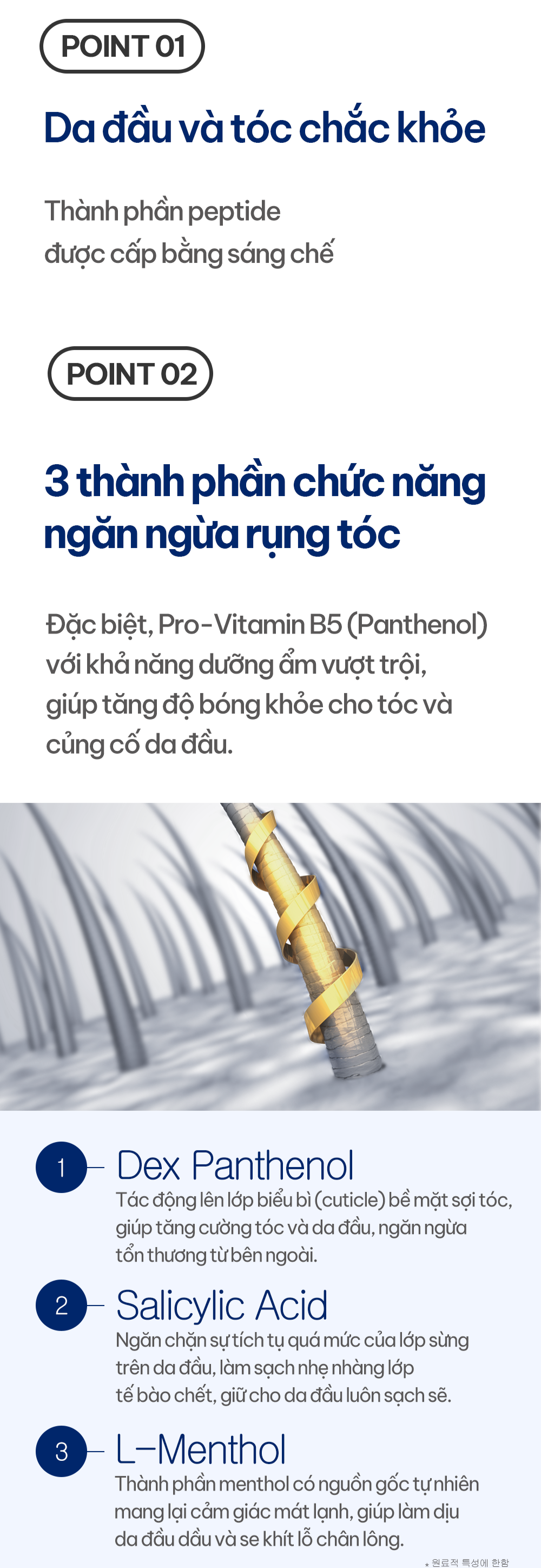 3 thành phần hoạt tính chuyên biệt giúp giảm rụng tóc hiệu quả: