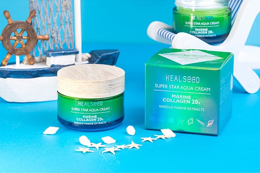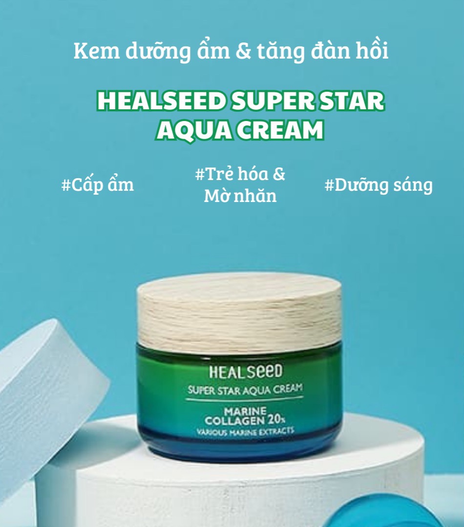HEALSEED SUPER STAR AQUA CREAM - Kem Dưỡng Cấp Ẩm Sâu Tăng Đàn Hồi & Làm Sáng Da - Collagen 20%, Chiết xuất 9 Loại Tảo biển - 55ml - [HS002]