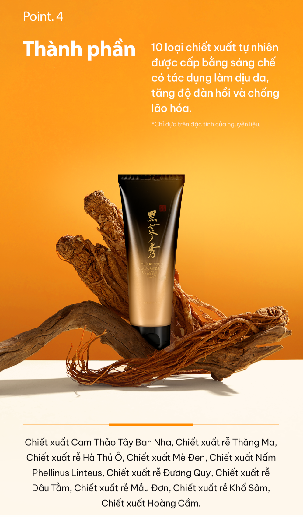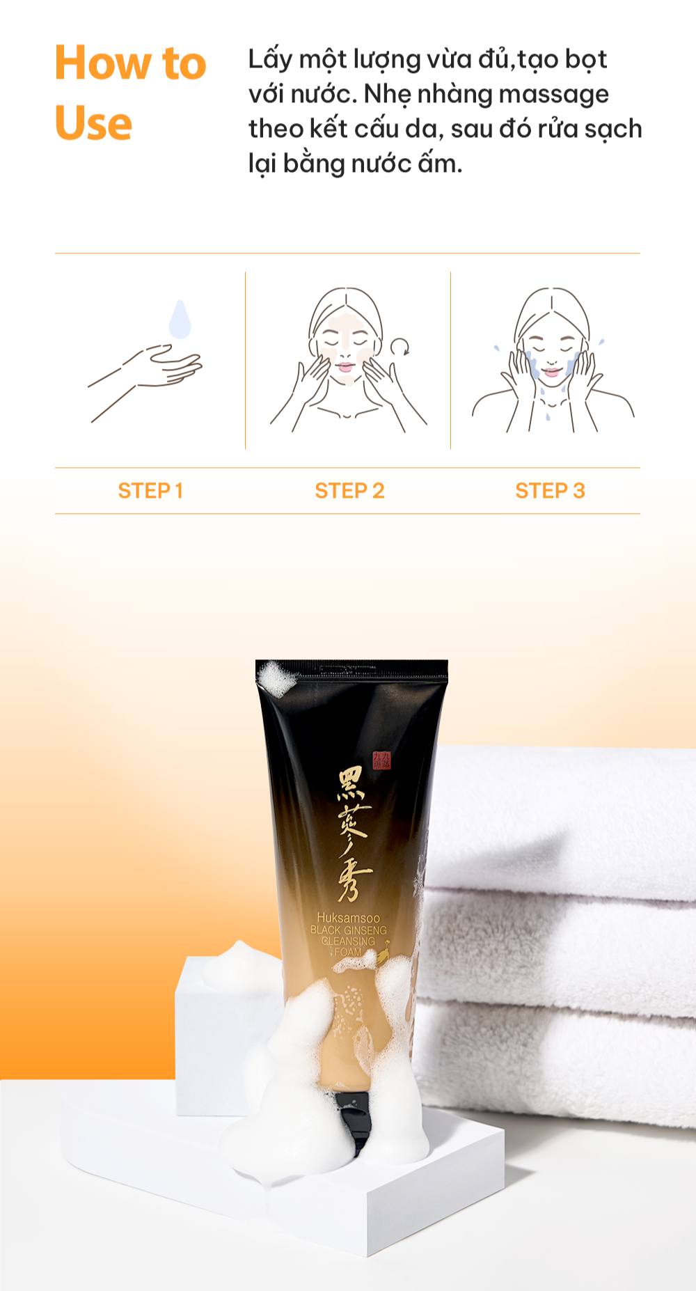 HUKSAMSOO Black Ginseng Cleansing Foam là sữa rửa mặt cao cấp chứa chiết xuất Hắc Sâm quý hiếm, được chế biến qua quá trình “Cửu Chưng Cửu Phơi” giúp tăng cường hàm lượng Ginsenoside. Sản phẩm không chỉ làm sạch mà còn nuôi dưỡng làn da, mang lại làn da khỏe mạnh, đàn hồi và tươi sáng.