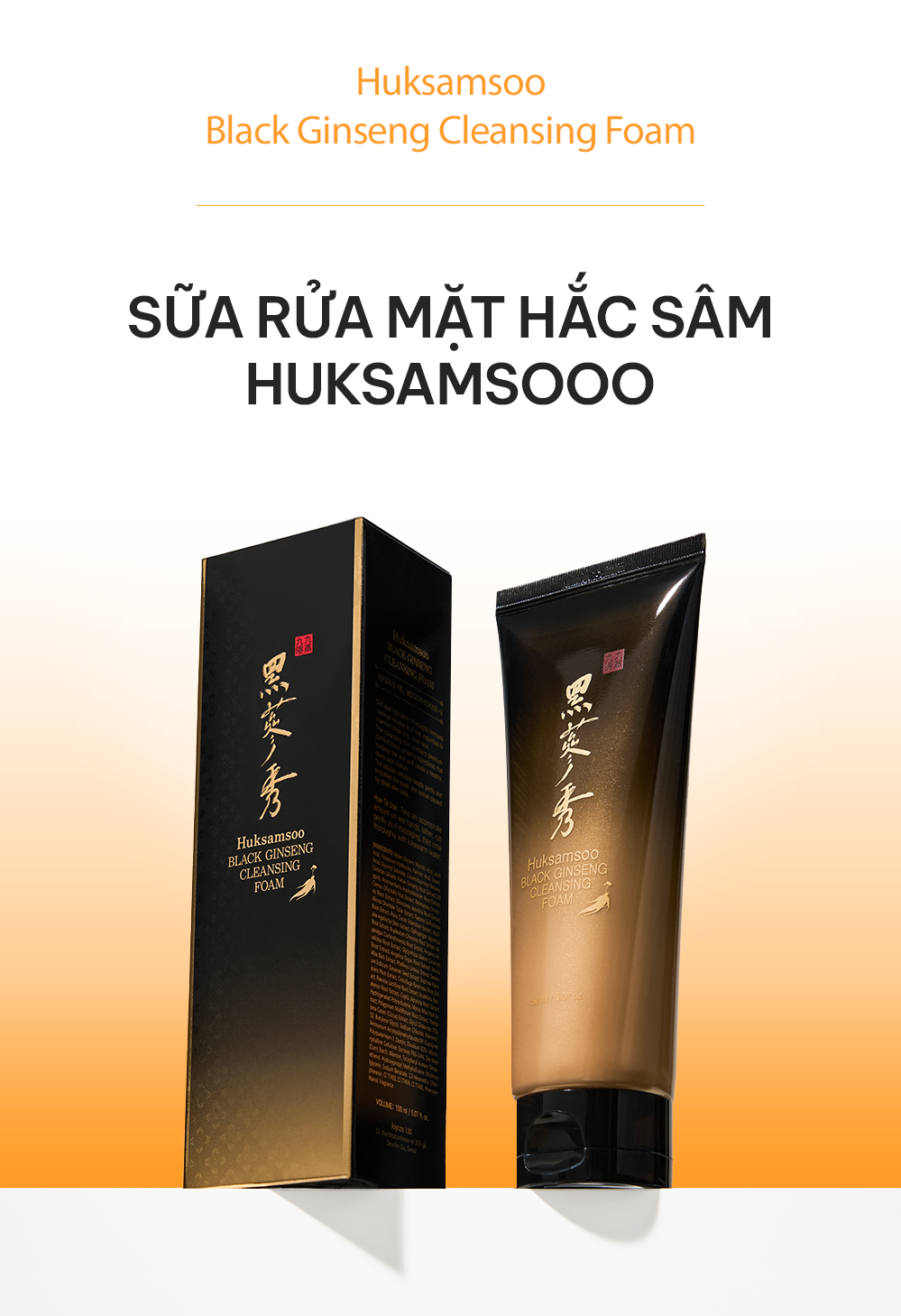 HUKSAMSOO BLACK GINSENG CLEANSING FOAM - Sữa Rửa Mặt Làm Sạch Sâu & Sáng Da - Hắc Sâm, Hạt Cellulose - 150ml - [HSS006]
