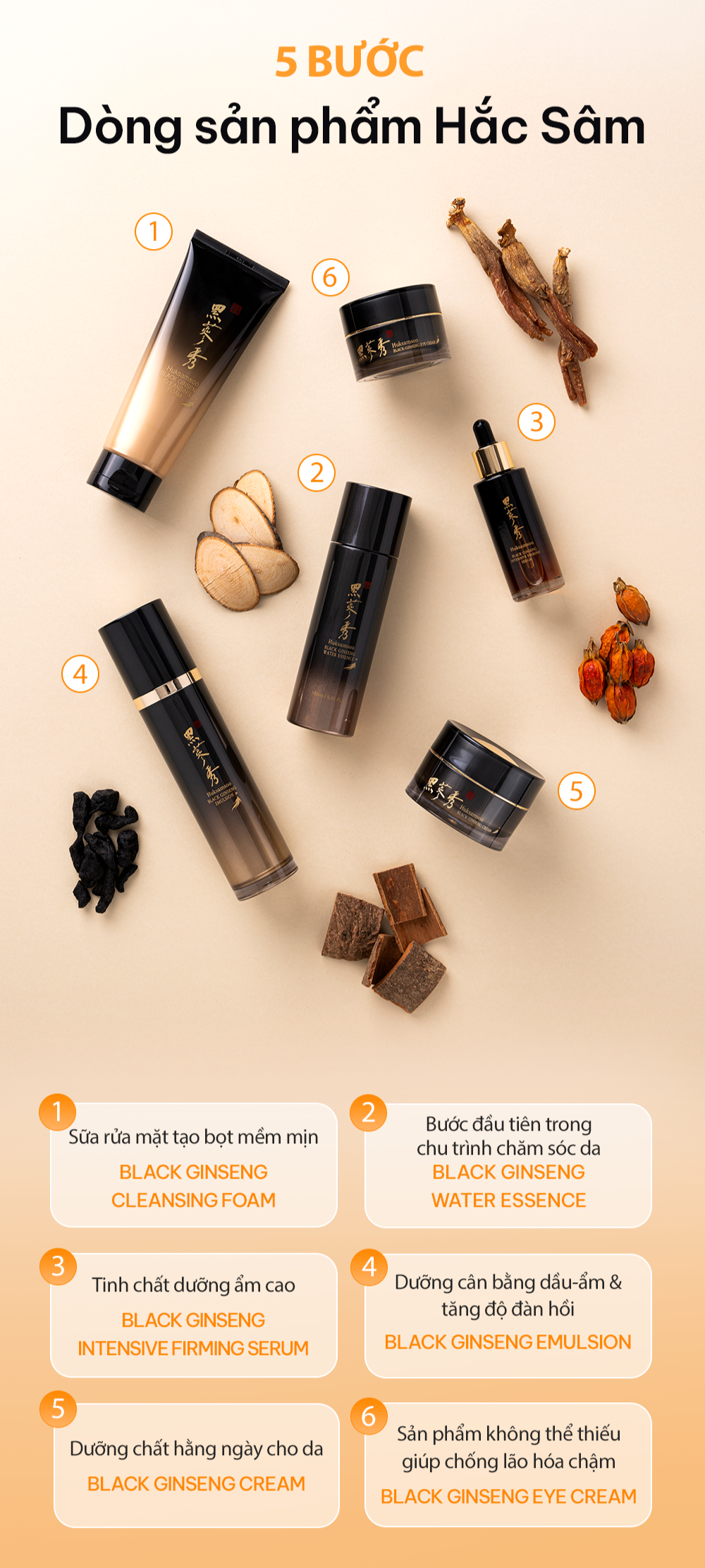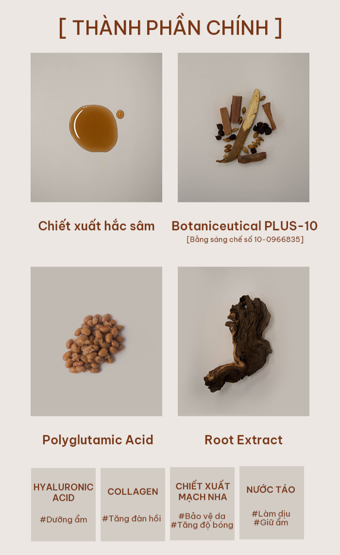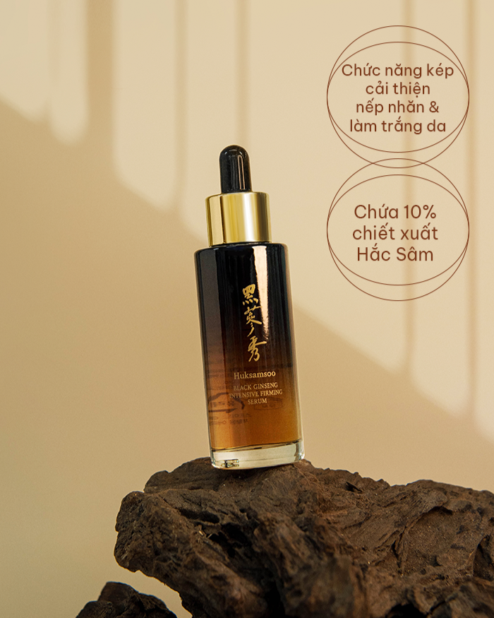 Huksamsoo Black Ginseng Intensive Firming Serum là tinh chất dưỡng da cao cấp được bào chế từ hắc sâm lên men 9 lần (Gujeunggupo) và hỗn hợp thảo dược Đông y quý hiếm. Sản phẩm mang đến giải pháp chăm sóc da chuyên sâu, phục hồi độ đàn hồi, dưỡng ẩm và làm sáng da, đồng thời hỗ trợ cải thiện các dấu hiệu lão hóa sớm.
