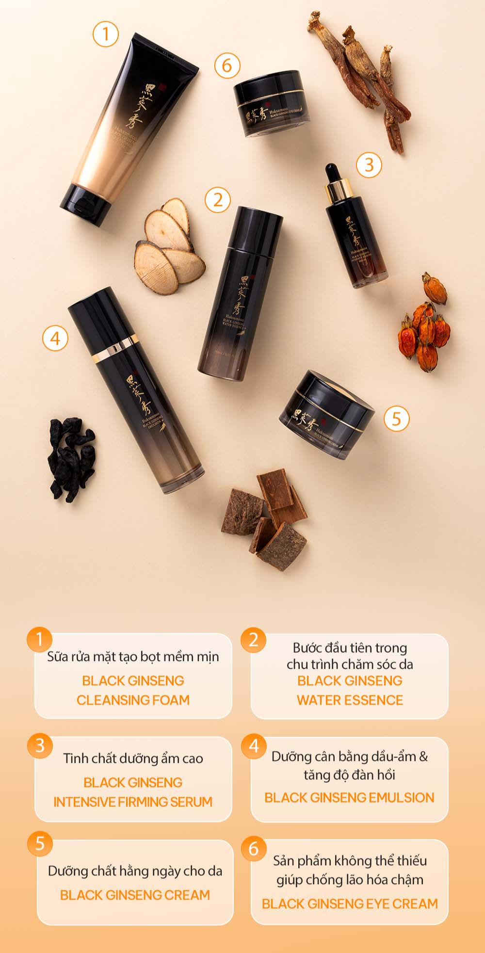 Bước 6: Kem dưỡng HUKSAMSOO Black Ginseng Cream → Khóa ẩm và bảo vệ, chống lão hóa toàn diện.